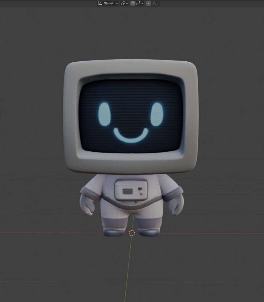 En parallèle, j’ai réalisé le personnage principal sur Blender : après avoir défini son design en équipe, j’ai pris en charge sa modélisation, son texturing, son rigging et son animation via Mixamo.